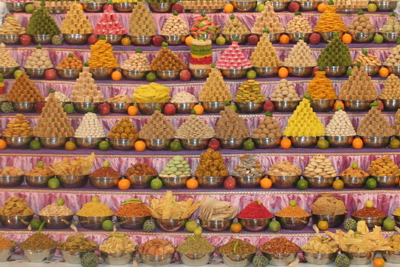 Celebrated by performing Govardhan pujan, where devotees make food offerings to the Lord.
