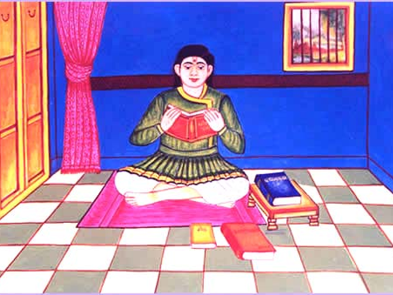 Now his father taught him stanzas of prayers. These are called STOTRAS. Ghanshyam learnt them by heart. Then his father made Ghanshyam read stories from the scriptures one by one and he completed all eighteen. It was time for Ghanshyam’s religious thread -ceremony (Janoi). Ghanshyam became a Dwij (a Brahmin-twice born). His study of vedas started. He learnt anything within twelve days whereas others will take twelve years to learn. Great learned men were surprised: “What a wonderful boy! Nothing is required to be taught to him; he learns everything himself.” Ghanshyam would smile and say, “Only absorption to learn is needed. If you have absorption, everything would come naturally.” Whatever Ghanshyam learnt, he used to write it down in a small book. He used to preserve this small note-book.