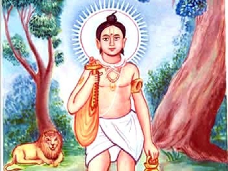 The next morning he got up early. He put around his neck BalMukund’s Batwa, carried with him a volume containing the essence [Summary] of all scriptures, prepared by him, on his left shoulder. In one hand he had a TULSI MALA [a garland of holy basil (ocinum sanction)] and a KAMANDAL (a wooden water pot of an ascetic ) in the other. He put a cotton-string girdle round his waist and a single cloth on the body. On his shoulder he had a deer-skin (Mrig-Charm). In a dress of a celebate [A BRAHMACHARI] he left his home early in the morning and began to proceed in the north towards the Suryu Ganga River.