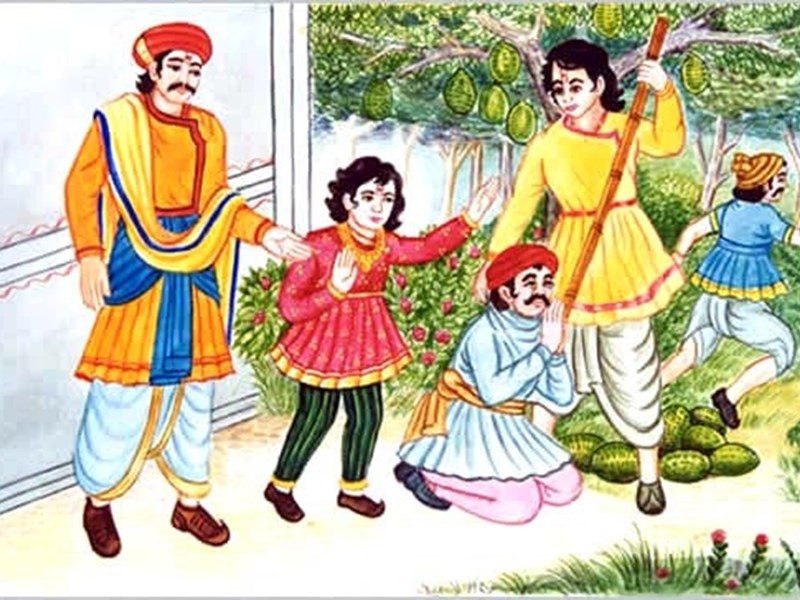 Dharmdev had a farm of fruits and flowers near his house. Some naughty people of the village liked to steal and eat the fruits of that farm. Many Jack-tree fruits ripened at that time. Two to three such scheming men entered this farm to steal the Jack-tree fruits early in the morning. No sooner did they touch the Jack-tree fruits, than Dharamdev approached there with a water-jug and a toothbrush cut from a babul tree. RamaPratapbhai and young Ghanshyam followed their father. The thieves were caught red-handed. RamaPratap shouted, “You thieves, I will now show you the taste of Jack-tree fruits.” RamaPratap was a fine wrestler. Moreover he was angry by nature.