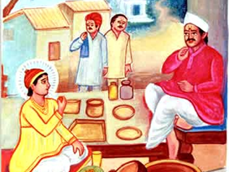 Once Suhasinibai, the wife of Rama Pratapbhai, was busy in the kitchen. She took off her ring from her finger and put it on a wooden seat. Child Ghanshyam decided to play a jest. He took the ring without the awareness of his sister-in-law. Then he went with the ring to a sweetmeat seller in the market. He said to the sweetmeat seller, “Take this ring and give me sweets to eat.” The sweetmeat seller was tempted to see the ring. He took it up and said, “Sit down, eat the sweets as much as you please.”